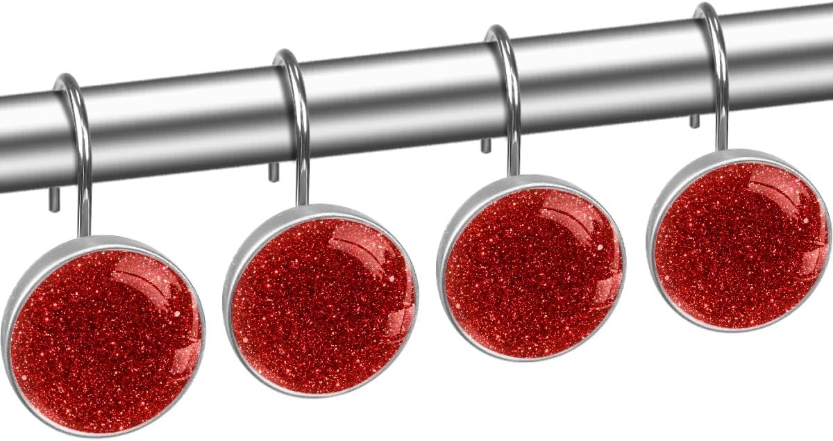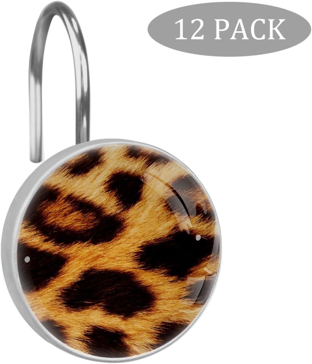 MXHOJOCEI Picture Print Round Crystal Glass Stainless Steel 12 Pack Shower Curtain Hooks. Multi Styles:Solid Color Themes:Blue, Green. Animal Themes: Flamingo, Sea Turtle. Creative Picture Print Themes:Leopard Pattern Print, Floral Pattern, Starfish. Size Information:Crystal Glass Surface Diameter:1.45 (3.7cm) .Hook Diameter:1.1in (2.8cm ).Suitable for a rod of 8-28mm(0.3"-1.1") diameter. Materials:Stainless steel hooks + smooth crystal polyresin buckle.Stainless steel with plating surface,no faded, smooth, low noise,durable. Easy to Install:Just thread through existing holes of your shower curtain,and hang over your shower rod.Quickly and easily. Decor your home:Our Curtain Hooks are suitable for all standard size curtain rods, Beautiful Picture print Hooks make your bathroom, living room, dining room, bedroom more unique.Creative and adorable look for the bathroom. Package:Packed with a pvc plastic box.Can be a gift to your friends.