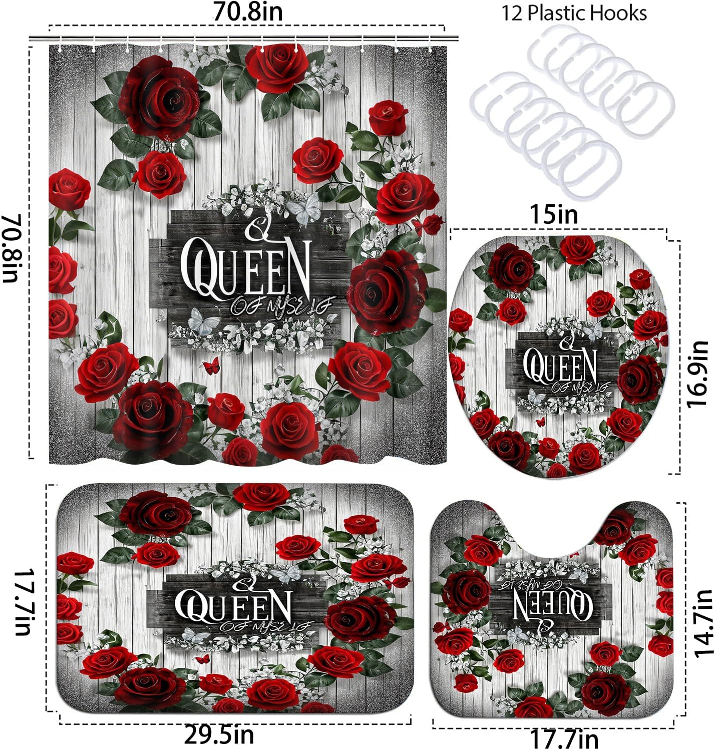 | Additional Features | boho shower curtain set, farmhouse bathroom decor set, retro bathroom sets with shower curtain and rugs, rose flower shower curtains for bathroom, waterproof shower curtains for bathroom |