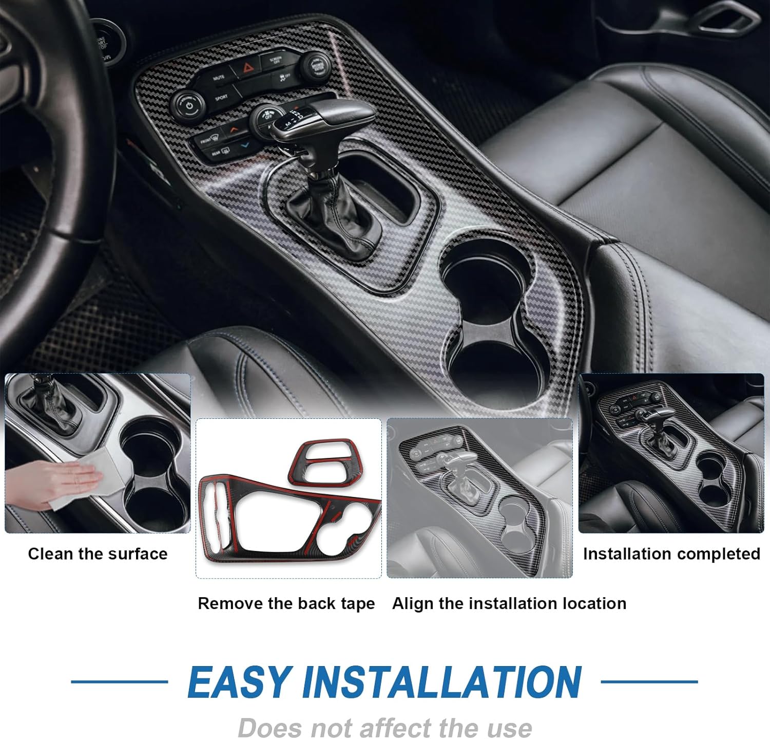 • 【Effortless Peel-and-Stick Installation】No tools, no mess—this carbon fiber-style interior accessory installs in minutes using pre-applied automotive adhesive. Simply clean the surface, peel, align, and press. For enhanced bond strength, gently warm the tape with a hairdryer in colder conditions.