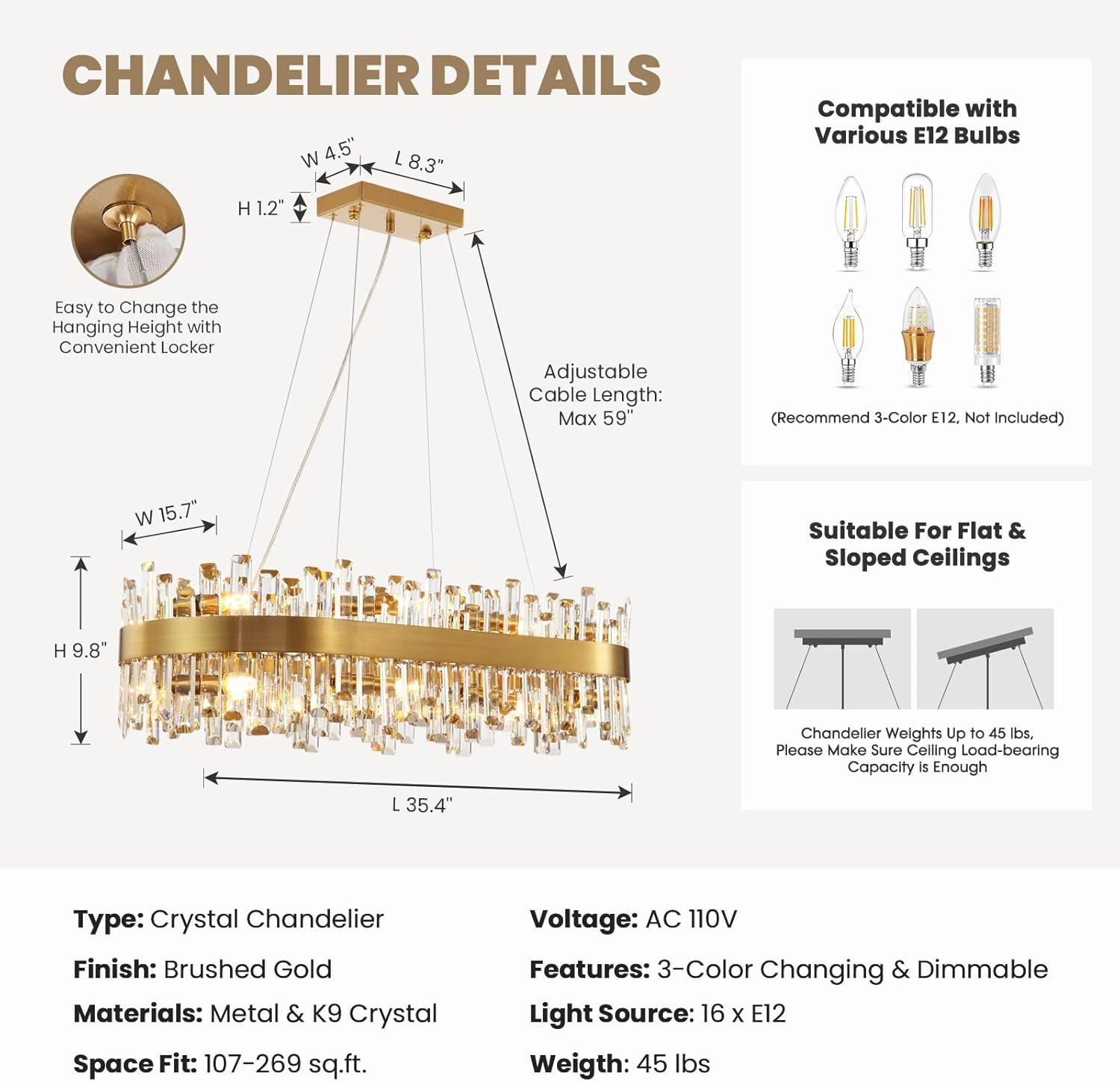 | Other Special Features of the Product | Adjustable Height, Color Changing, Dimmable |