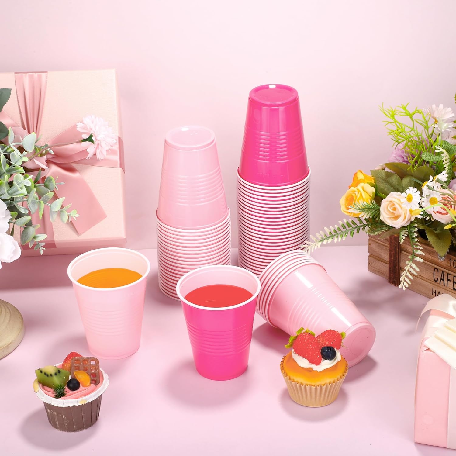 Specifications: Size: 12 oz Color: light pink, hot pink Package includes: 120 x plastic cups Warm prompts: Color differences may exist due to different displays Manual measurement, please allow slight errors on size