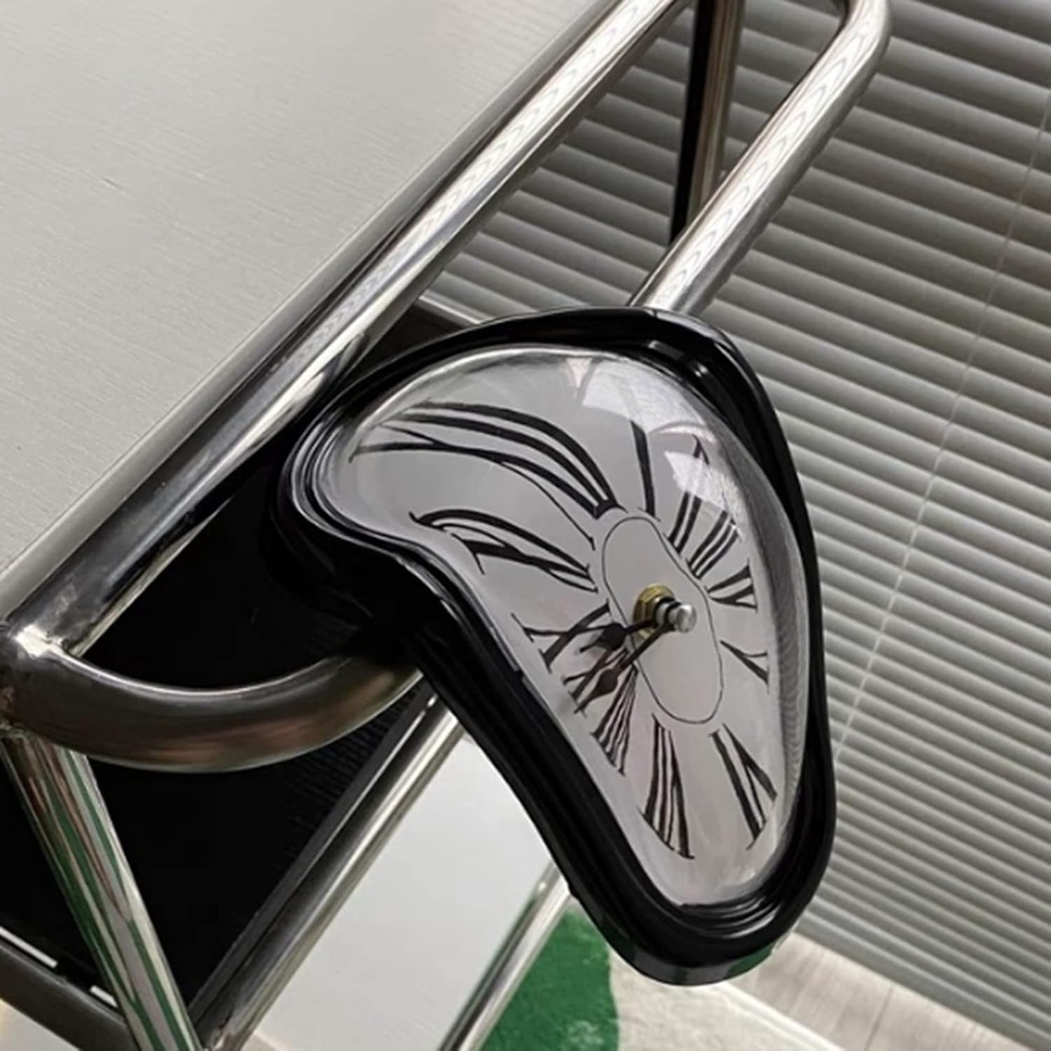 [ CLOCK]: The of this clock is coated with metal baking paint, giving it a metallic texture that is highly and resistant to wear, ensuring it stands the test of time without erosion.[ACCURATE TIMEKEEPING]: Not only is this clock decorative, but it also operates with high accuracy, ensuring punctuality and without the need for complicated installation.[STABLE PERFORMANCE]: With a stable movement mechanism, this clock runs smoothly and efficiently, offering precise timekeeping while conserving energy and maintaining a consistent speed.[RETRO STYLE]: Embrace the nostalgic vibe of this clock which features a ticking sound that adds to its retro charm, allowing you to truly feel the passage of time in a classic way.[ GIFT]: Whether for friends or family who have recently moved, this clock makes for a thoughtful housewarming gift that will add a touch of style and functionality to their new space.Spec:Item Type: Melting ClockMaterial: PlasticWeight: Approx. 250g / 8.8ozSize: Approx. 145 x 175 x 115mm / 5.7 x 6.9 x 4.5inPackage List:1 x Melting Clock