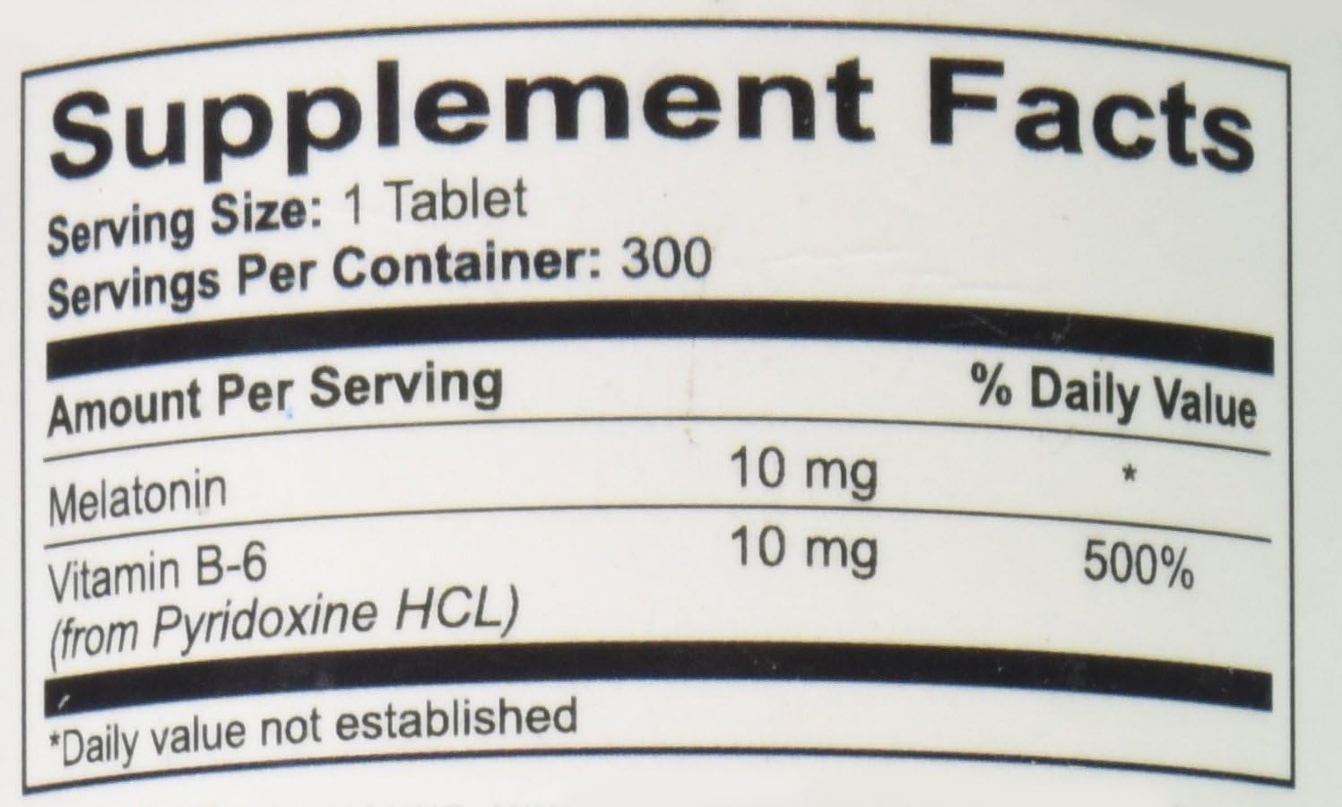 • SERVING SIZE & USAGE: Take one tablet 20 minutes before bedtime or as directed by your healthcare provider. NutraBulk Melatonin 10 mg Tablets are available in 300 count. CAUTION: If you are undergoing any medical treatment, or pregnant or lactating, we suggest consulting your healthcare provider before taking any nutritional supplement