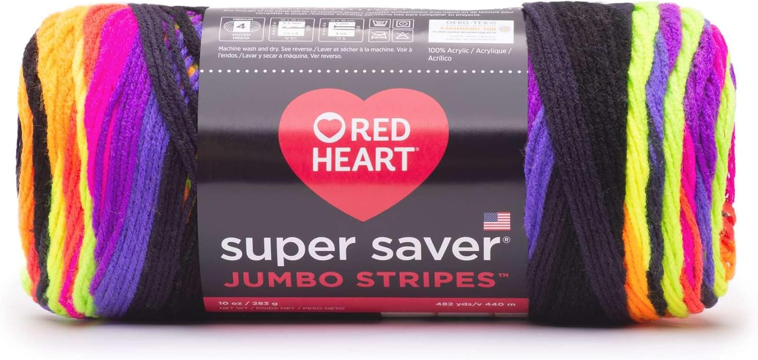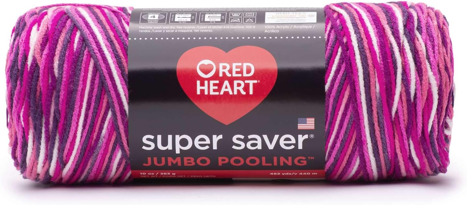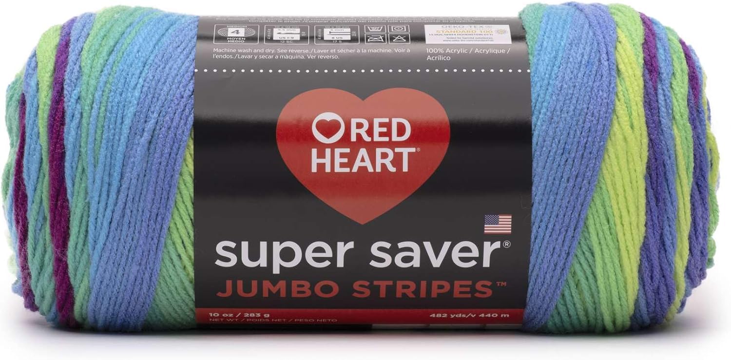 Red Heart Super Saver Jumbo yarn is the same Super Saver yarn you love in larger skeins. Each Super Saver Jumbo skein is the size of two skeins of the regular Super Saver, so you have half as many ends to weave in. Just like Super Saver, Super Saver Jumbo has no-dye-lot solids. Super Saver Jumbo is ideal for sweaters, afghans, and other projects requiring large quantities of yarn. All Super Saver Jumbos are OEKO-TEX certified against more than 300 harmful substances. Learn more about this safety rating.